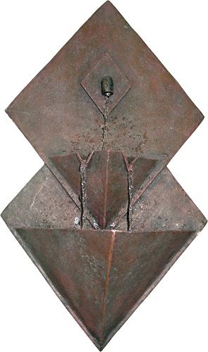 Double the décor value of any room or foyer, with this handsome Flaminia two tier wall fountain. An outstanding design based on geometric shapes, the overlapping diamonds have an inverted pyramid basin, a single tap, and two water channels in the upper bowl. A fabulous accent that will stand out for its antiqued finish and understated style. Pump and cord included. 13 x 7 x 23.25 inches.